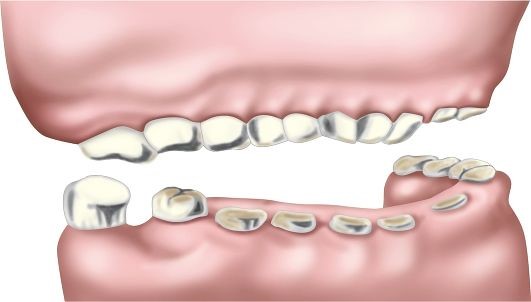 Стирание зубов может приводить к полному стачиванию коронки зуба. Довольно часто причина кроется в неправильном прикусе, когда основная нагрузка приходится на боковую, а не на жевательную поверхность зуба, которая значительно хуже приспособлена к измельчению пищи. В качестве менее распространенных причин указывают воздействие кислот, щелочей и других агрессивных веществ, а также нарушение минерального обмена. Лечение патологической стираемости зубов направлено на устранение выявленных дефектов доступными врачу методами.